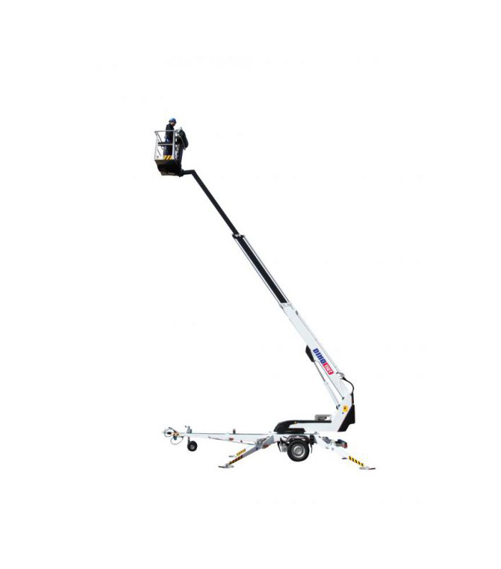 Телескопический прицепной подъемник Dino 150T оснащен длинной стрелой и надежным поворотным механизмом, благодаря чему позволяет проводить высотные работы в труднодоступных местах, и отличается высокой маневренностью без потребности передвижения.